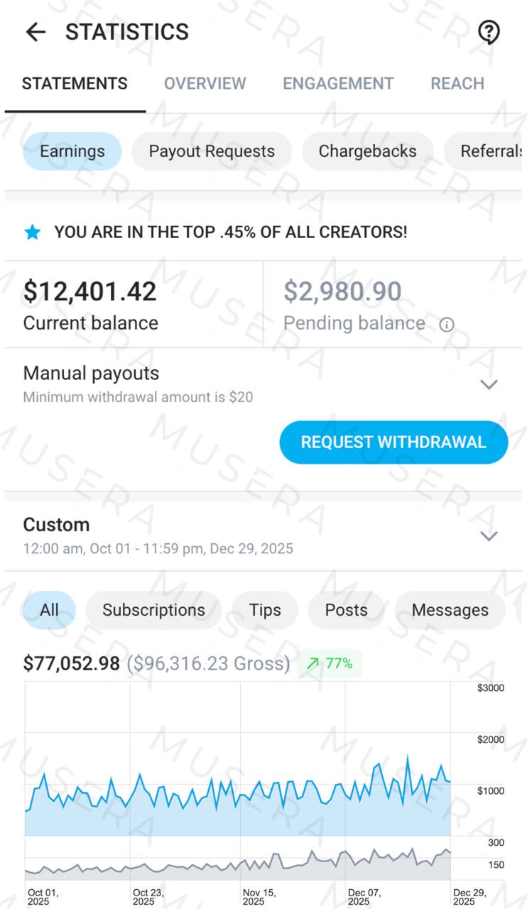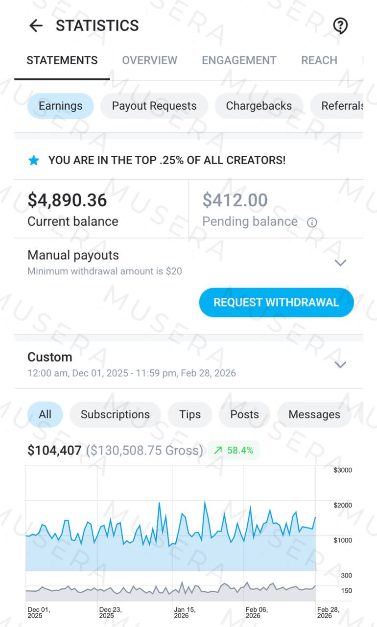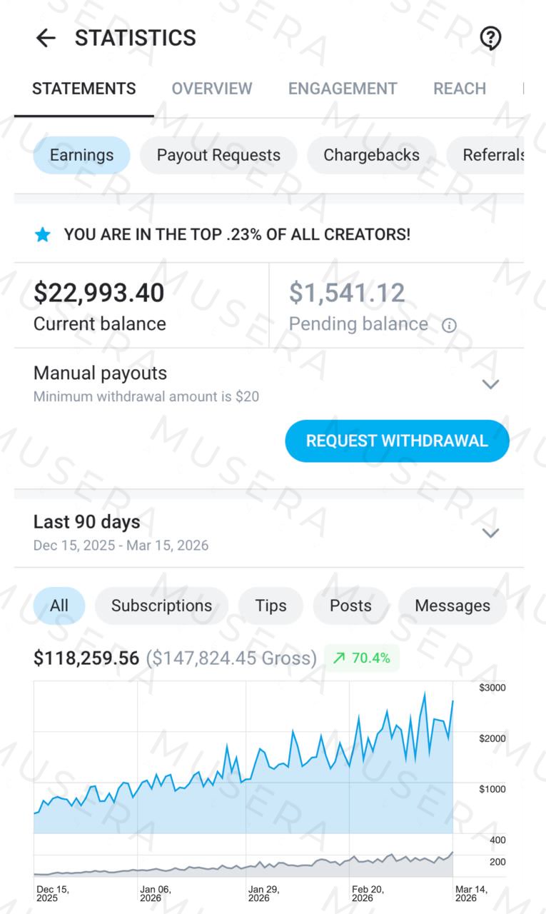 Our creators see consistent growth in subscriber count, PPV revenue, and monthly earnings within the first 60 days. We let the numbers speak.